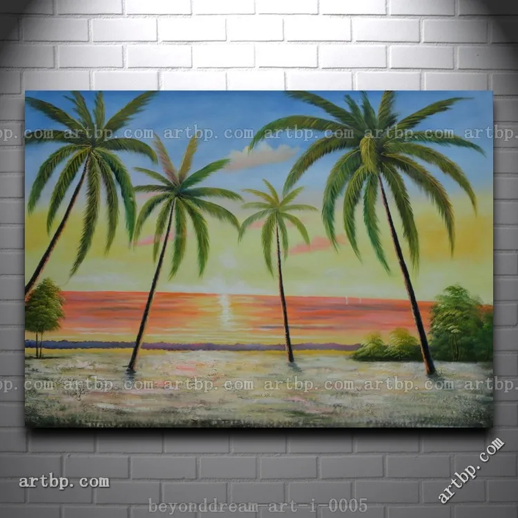 Seashore Palmbomen Op Sunset Olieverf Naturalisme Zeegezicht