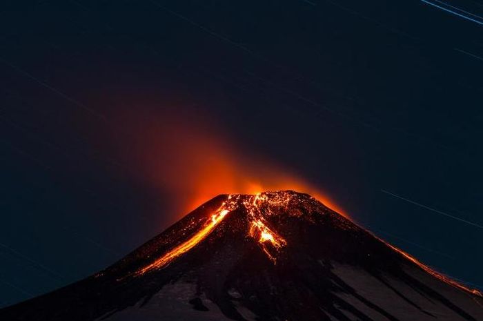 Potret Malam Yang Menakjubkan Saat Gunung Berapi Di Cili Meletus