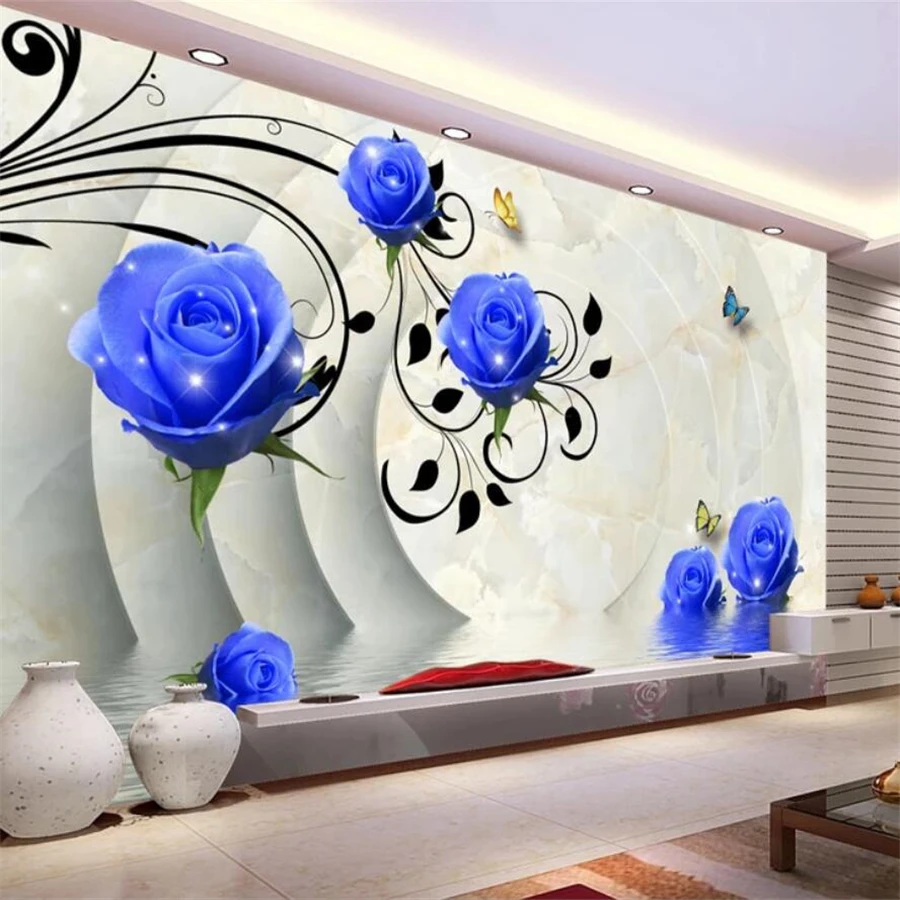 Tv Backdrop Sederhana Dan Bergaya Biru Bunga Mawar 3d Wallpaper 3d Stereoscopic Wallpaper Dekorasi Rumah 3d Bunga Wallpaper 3d Stereoscopic Wallpaperwallpaper 3d Aliexpress