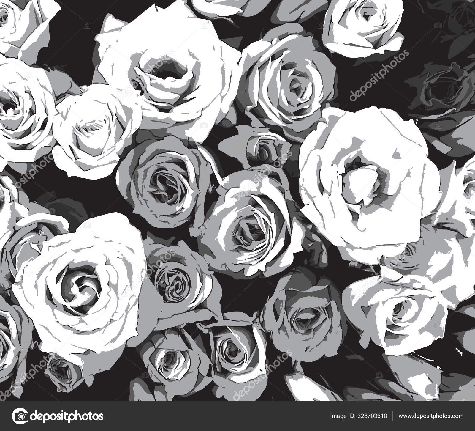Latar Belakang Bunga Wirh Buket Mawar Dalam Desain Hitam Dan Putih