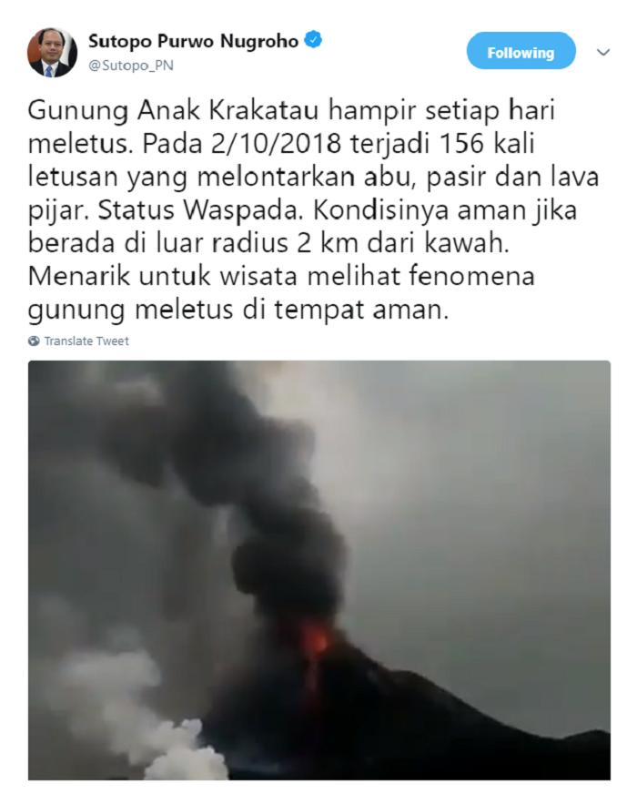 Gunung Anak Krakatau Meletus Sutopo Purwo Nugroho Sebut Menarik Untuk Wisata Semua Halaman Nakita