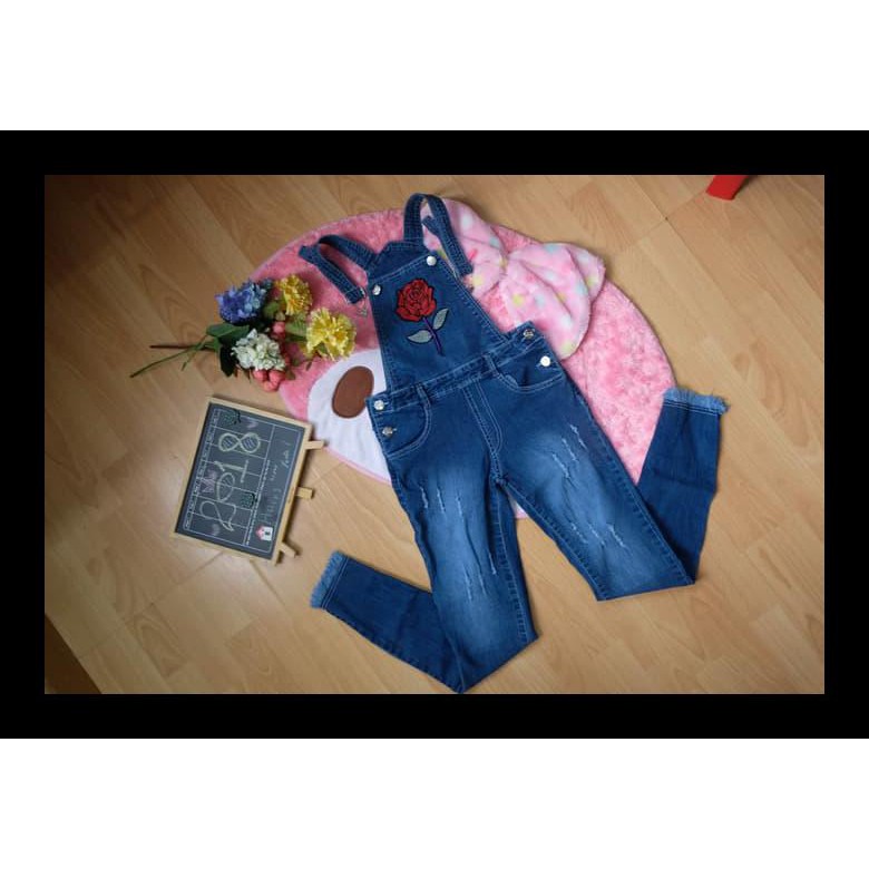 Celana Panjang Kodok Overall Pensil Bunga Mawar Free Belt