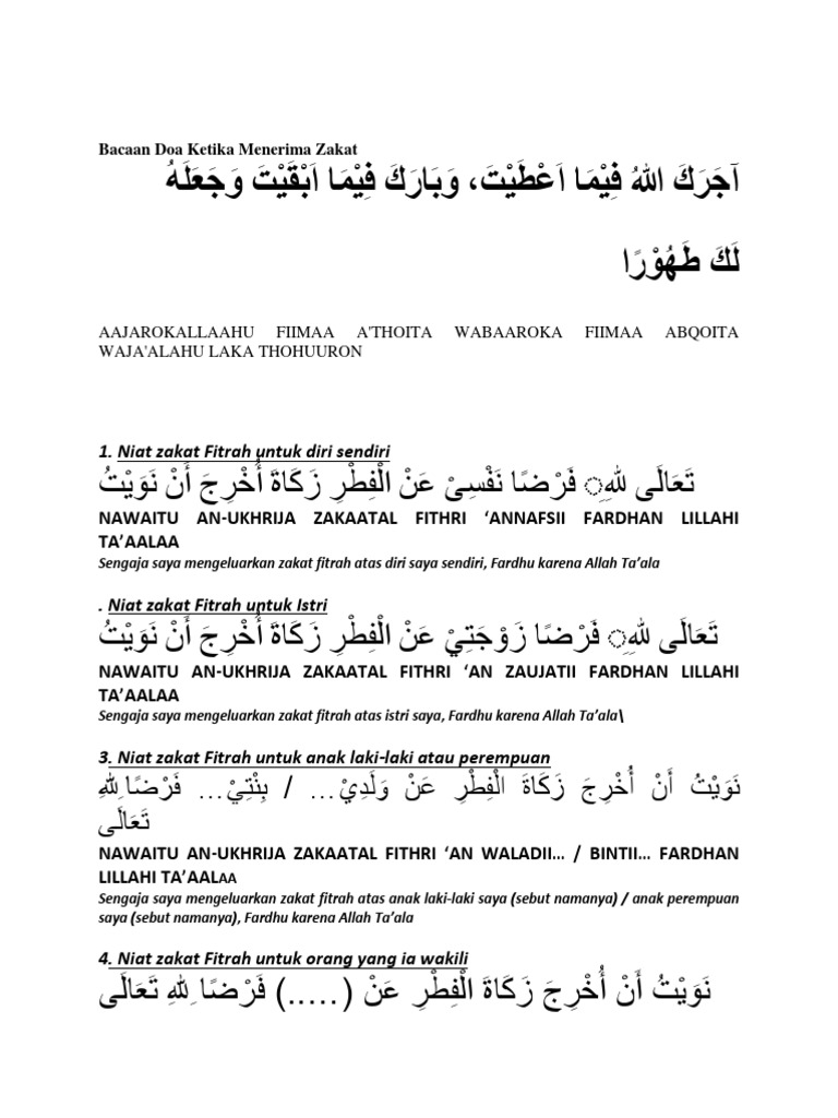 Bacaan Doa Menerima Zakat Fitrah Doc