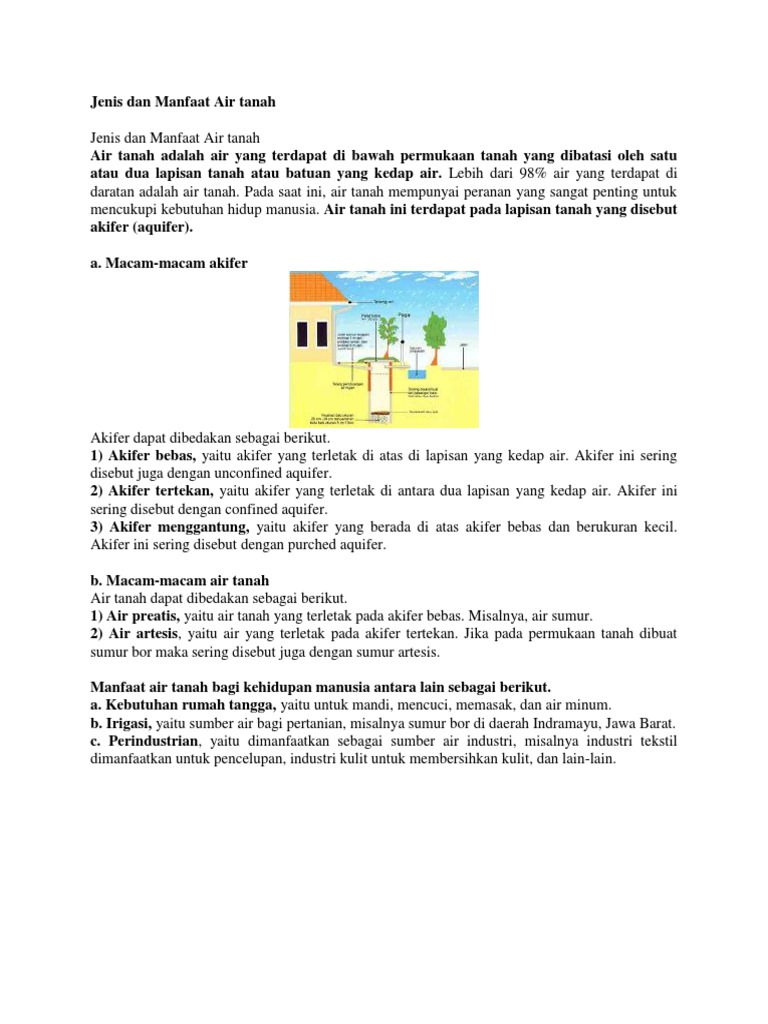 Jenis Dan Manfaat Air Tanah Docx