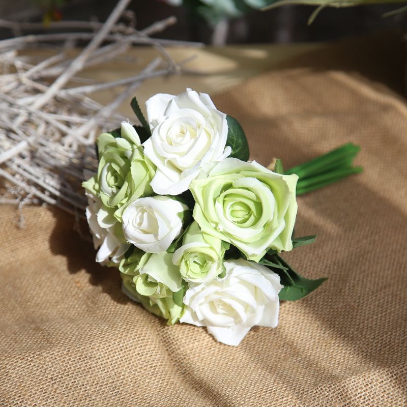 Buket Bunga Mawar Artifisial Cantik Warna Putih Hijau Untuk