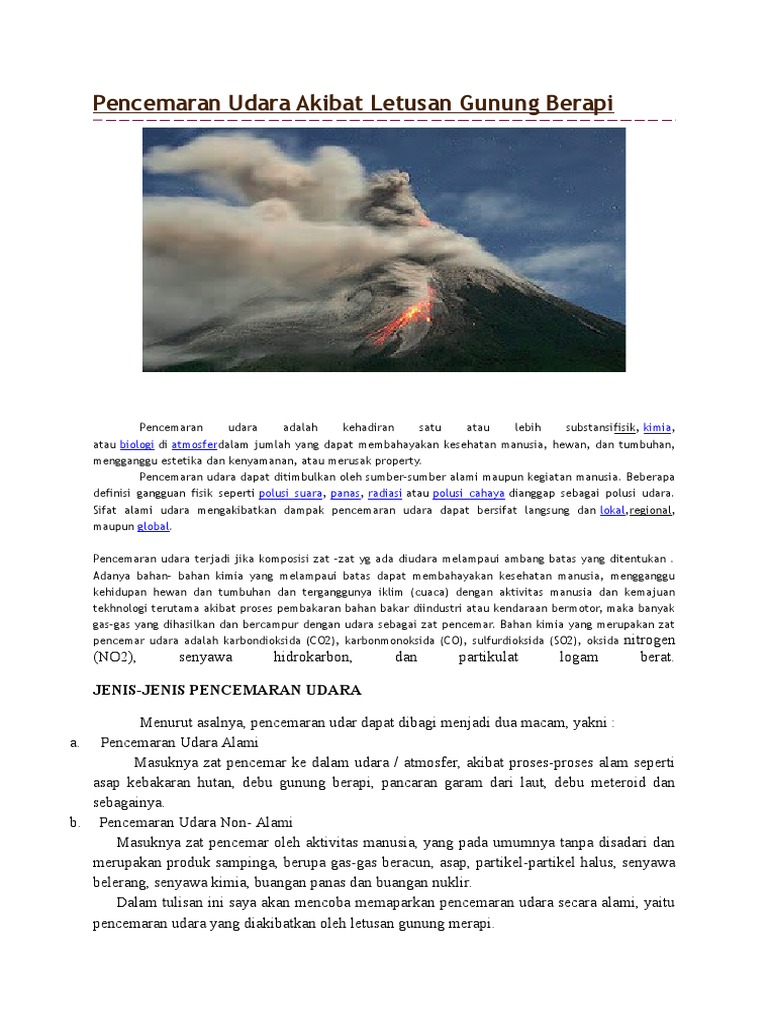 Pencemaran Udara Akibat Letusan Gunung Berapi