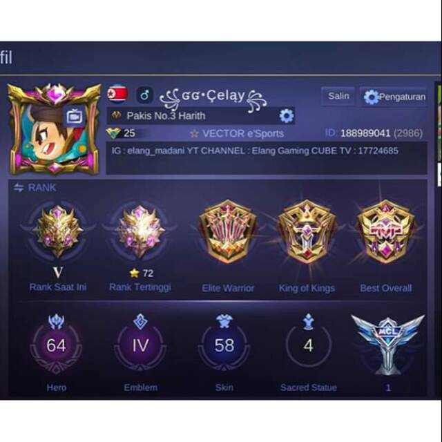 Akun Mobile Legend Pribadi Smurf Tier Legend Mythic Shopee