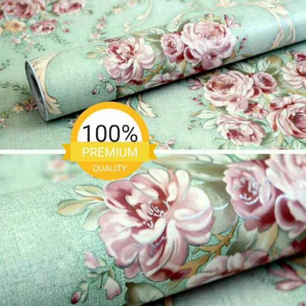 Kode 953 Wallpaper Sticker Dinding Motif Shabby Hijau Bunga Mawar